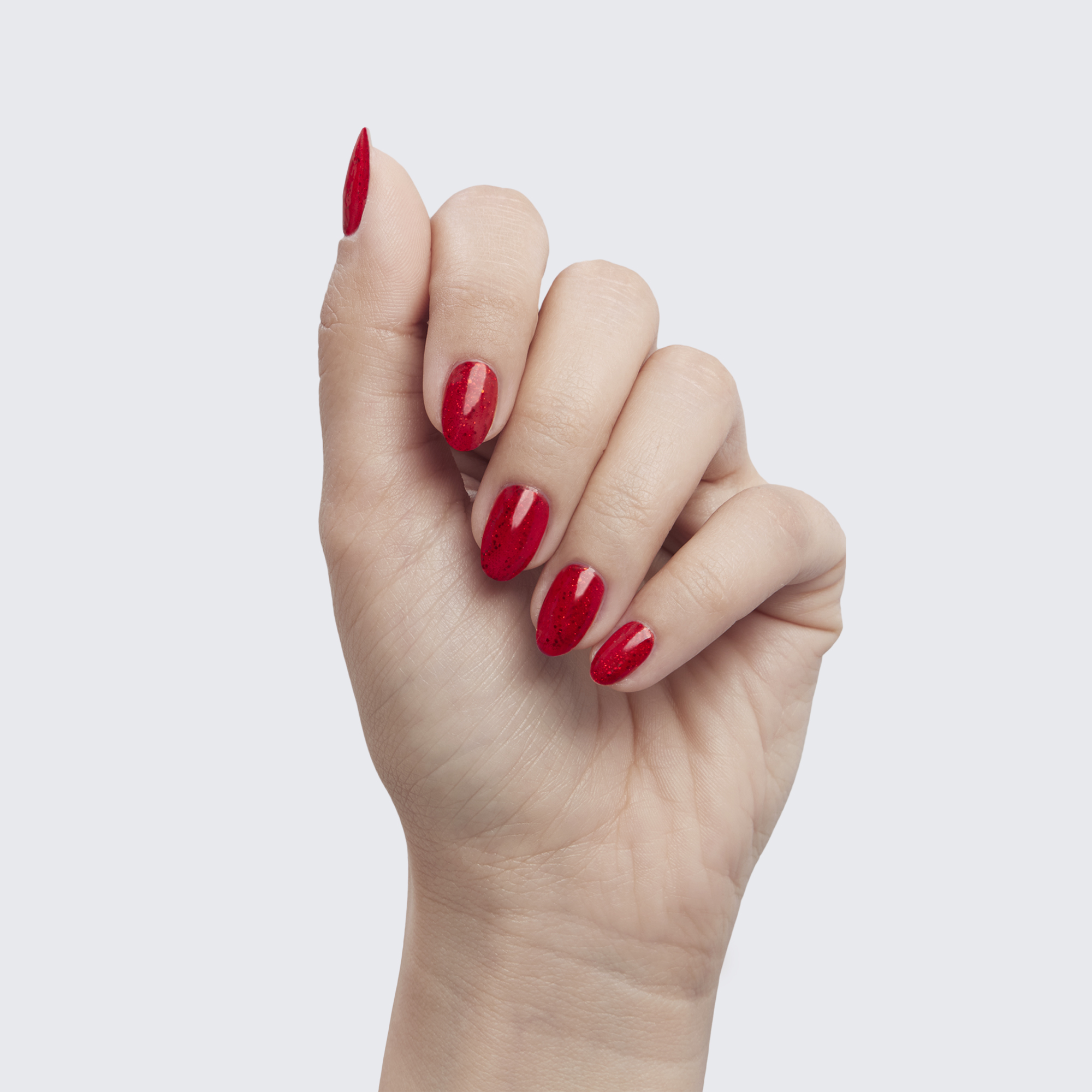 Classic red. Sparkles. Opaque. Cool undertone.
